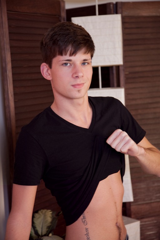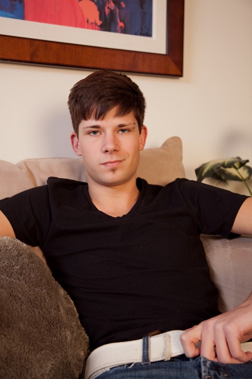 Aaron continued to stroke his rock hard cock as he fucked his hole with his new best friend.  Watch the look on Aaron’s face as he strokes his cock.  There are times that he barely looks 18 while other times you would think he was in his mid 20’s.  Aaron definitely isn’t new to sex and he proves it by working his cock until he sprays a thick load of come all over his lean chest and abs.  I will definitely try and get Aaron back for more.