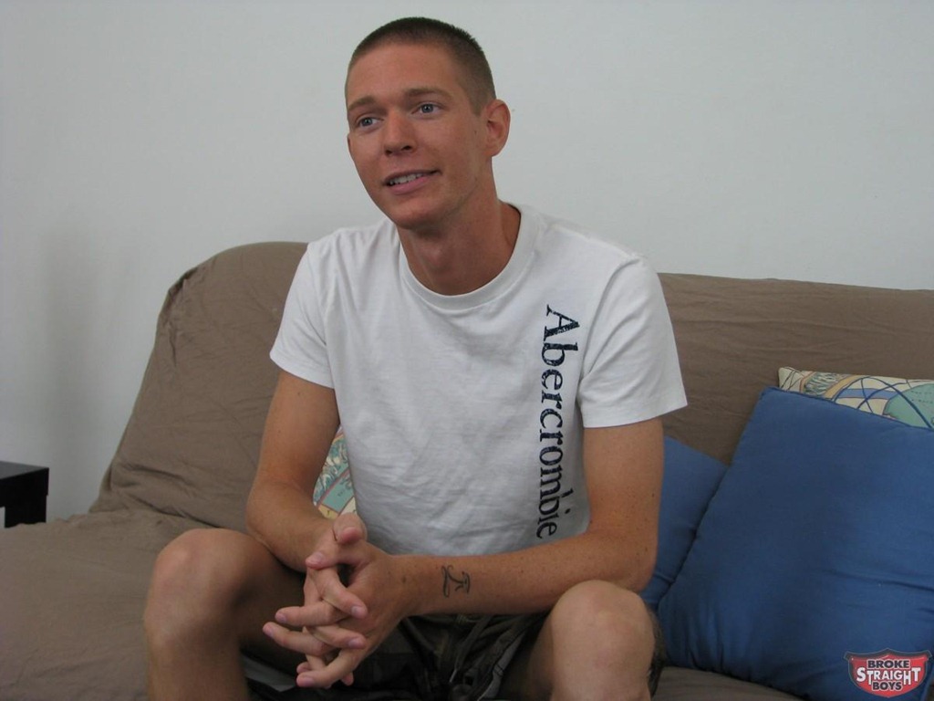 Curtis describes himself as straight but Iím not so sure. He made this film on the eve of his 20th birthday and spent his last day as a teenager jerking his big dick for our pleasure (and his!)!  After having a relaxed chat about his life, his first times and the wanking competition in the army barracks, he stands proud to show off his flaccid cock and very large balls… before he sets about working his prized meat to full mast – lovely 🙂