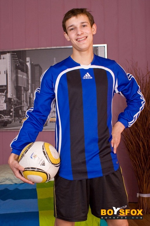 But nerves aside he soon settles on the bed and works that lovely dick to its full 7 inches, stroking it both fast and slow, ensuring he alternates the pleasure he is giving himself (and us!) from his shaft! Olly then kneels up to wank his dick some more before he jumps off the bed, stands proud and allows us to get some lovely underneath shots! Finally he stretches out across the bed and goes for it… he shoots a lovely load of cum all over his abs and then milks the last remaining drops which dribble down his shaft and ass crack, hot!  🙂