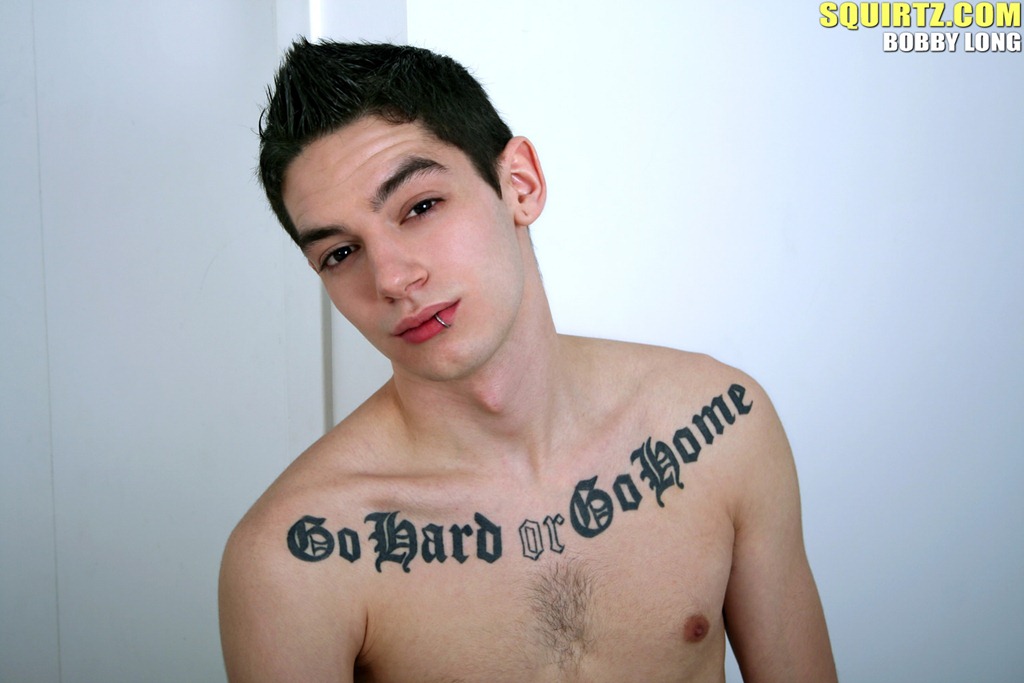 It’s been almost a year since Bobby Long graced our camera. For months now Bobby has been in self-imposed exile from the homo-erotic temptations of the big city, busying himself with his job at a restaurant and girls in a small town about an hour away. But spring was in the air and Bobby was feeling the need to be back in the company of boys who like boys. Bobby’s gained a little bit of weight, which looks great on him and added a lip ring (but it’s a clip on).