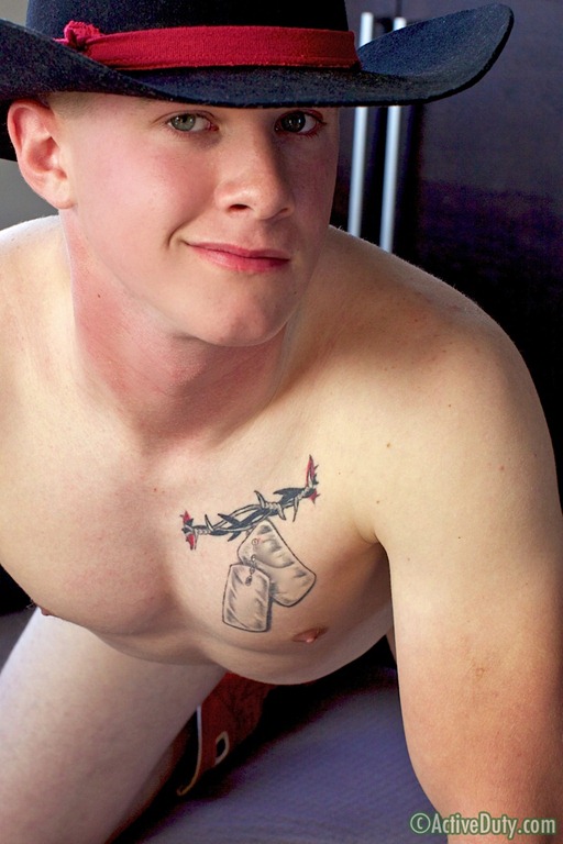 Maverick is a cute real cowboy introduced to us by Active Duty. In his first solo, we see from the start that he’s just fine showing off his ass. He’s proud of his saddle and I don’t blame him. The view from underneath him made me drool and Maverick is happy to entertain. The next time Maverick showed up, he had his buddy Haws in tow and his is where things really got interesting.