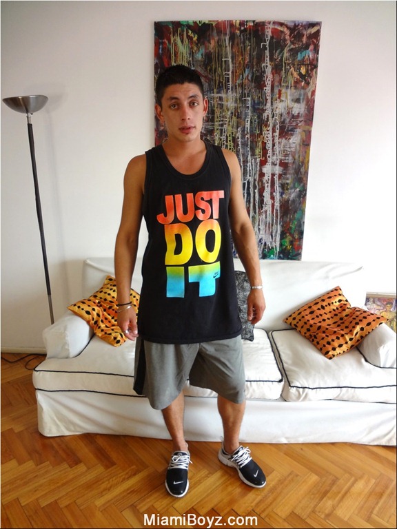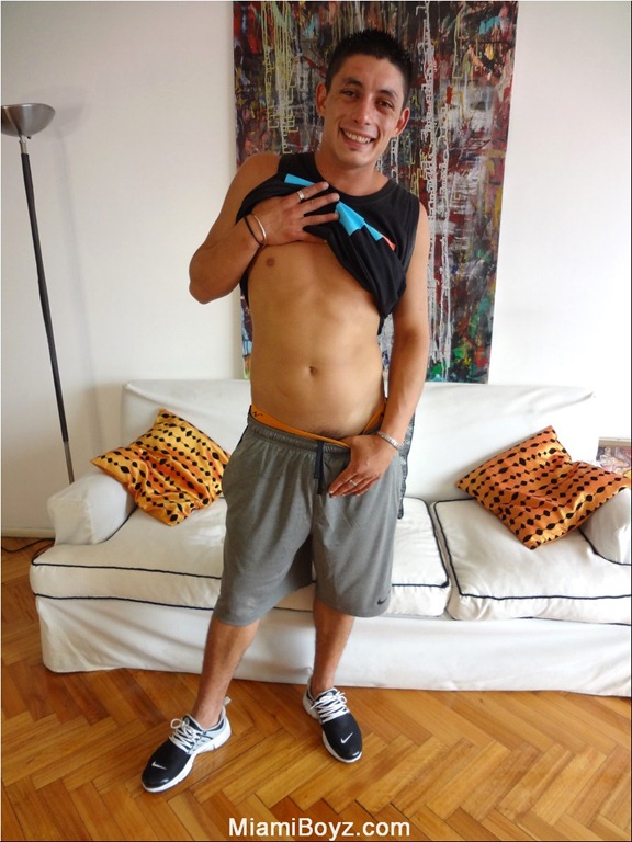 Dante is a hot 20 year old Latino who we noticed hanging out with some friends at a local park…he was skateboarding (and very good at it) which added to his youthful macho appeal…of course, the fact that he had his shirt off and was showing off his smooth muscular chest added to that “appeal” or should I say our LUST for him! When he makes eye contact with his dark bedroom eyes you are drawn into his gaze…but as your eyes travel down his body you are equally as drawn to his steamy young crotch and what is contained in his box briefs! We invited Dante back to the studio for an interview, although I can tell you that my mind was already made up about shooting him…I knew that I had to share this hot young discovery with our members! Once we showed him the site he was down for it…he told us that he had recently broken up with his girlfriend and that he was jerking off everyday so why not bust a nut for us! So we did what we do best…made him feel at home…put some nasty straight porn on the laptop to motivate his hard on and filmed the entire thing from fully clothed to the slow reveal of his perfect young body to the moment that we get to see his soft uncut cock until it grows to the full monster 8 inches! He jerks off standing up and really works that boner over until he shoots his hot load for us all to enjoy!
