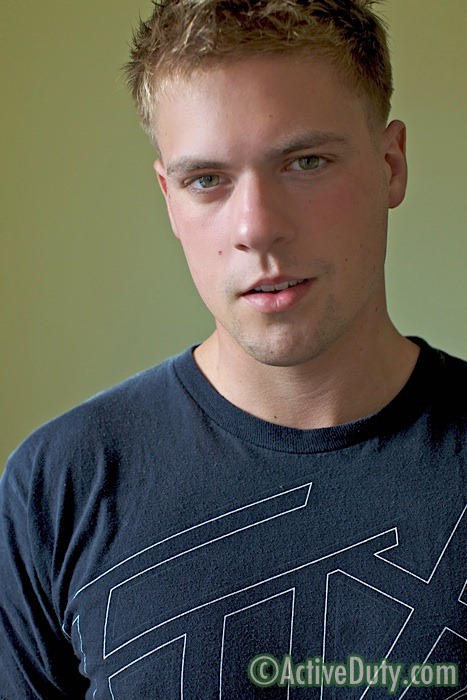 Active Duty’s new recruit Bailey is a sexy blonde twink with smooth skin and piercing blue eyes. The 22 year old stands 5′ 9″ tall and weights 160 toned and tanned pounds. He loves soccer and raves. In his debut solo, he flirts with the camera, puts on a nice show wriggling out of his Abercrombies, and sucks his finger in a very hot way. This amateur says he’s never done anything with a guy before, but by the end of this scene he says he’s ready to try.