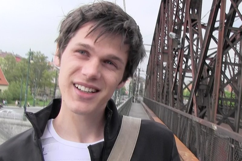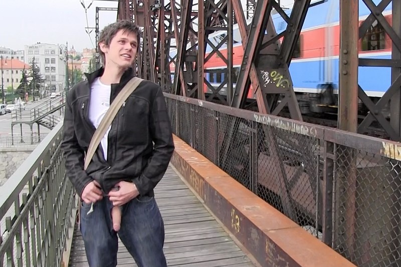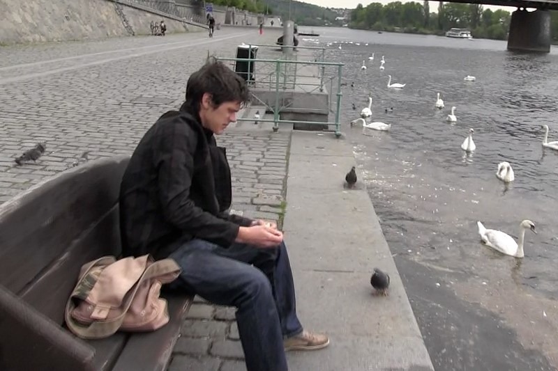 Prague has a wonderful river-walk. All along the river Vltava you can sit, relax and enjoy the day. I wanted to go to the Zoo again but it was a bit rainy and it looked like a thunderstorm might start soon. So I started to interview some guys right at the river-walk. I was not so successful in the beginning but then I saw a boy sitting on a park bench and feeding some swans and ducks. He looked a bit depressive. Maybe some money would cheer him up? He agreed to sell me his undies for two thousand crowns. He was so much into money that I talked him into giving me a blow job. When I noticed his ass I asked him for more. Well, you must see his reaction. And the thunderstorm which surprised us.