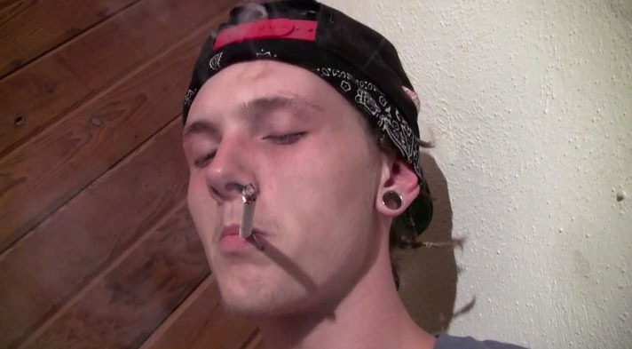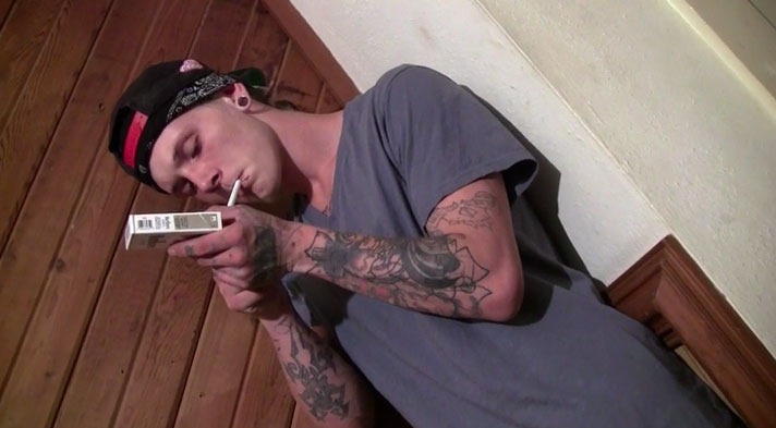 20 year-old skater thug Kyd Cash fires up his smokes and works on his cock while he chains!