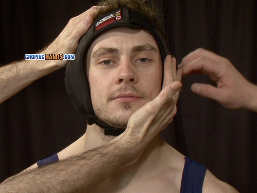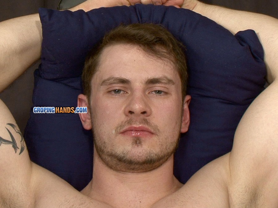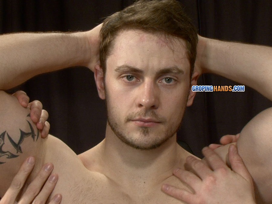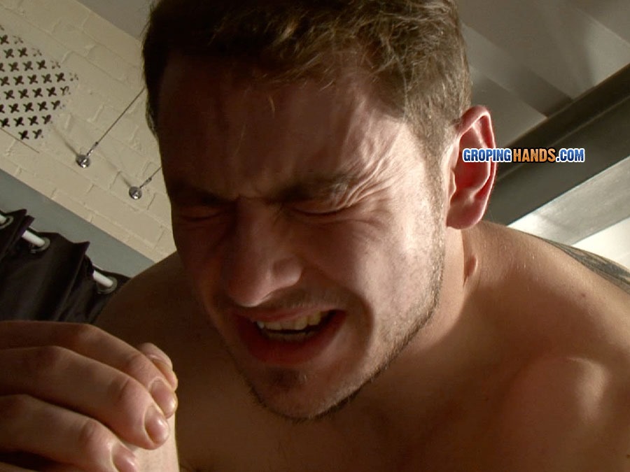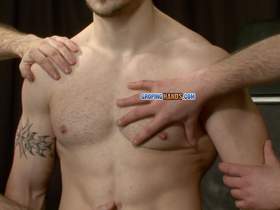 Muscular tattooed wrestler Nick has an intimidating stare and a hulking powerful physique. We’re great fans of the sport – especially the tight singlets these sportsmen wear that emphasize their bulging cocks and firm shapely asses. At GropingHands, the pervy men get to peel this layer off bad boy Nick down to his jockstrap and enjoy stroking his body which feels like hot steel. He gets particularly grumpy when they invade his tight straight asshole. They tease his large hefty cock with its long silky foreskin and turn him on so he grows a large stiff erection.