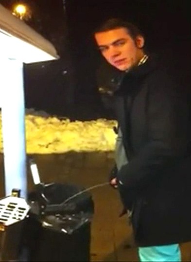 Yann is a well dressed young gentleman with good breeding and a firm focus on his academic achievements. However, after a few drinks he thinks nothing of pulling out his uncut cock and pissing into a public bin in the middle of a high street shopping parade. His friend is all too eager to capture this on his mobile phone, even moving closer at one point to get Yann’s cock full in shot. Can we blame him?