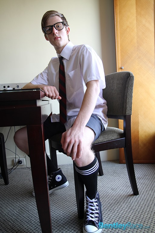 Our favourite Aussie boy Olly is back showing it all off on BentleyRace. 18 year old Olly Daniels was previously shot by my mate Zac. So this is actually the first time I met our popular new mate.  And I can tell you that this softly spoken teenager is totally a sweet guy. He was so apologetic when he arrived late for the shoot after breaking his phone. Completely shy at first Olly started to pose for me. I could see that he was already hard as a rock as he pulled his short down over that lump in his undies. Olly has got one of the nicest fat cocks I’ve ever seen. And you gotta love his little “Welcome” tattoo hidden in his blond pubic hair.  Now all of my mates want to get in to a porn scene with Olly. Unfortunately he only wants to do solo stuff for now. Sorry boys!  Olly made a great video after we finished the video. I loved it when he stood up on the bed and squirted cum right across the room. Not only cute… but Olly is extremely talented!