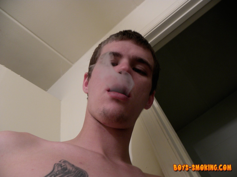 Horny chainsmoker Cain smokes his cigs down HARD and strokes a load out of his throbbing boner!