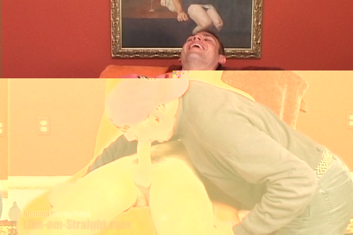 We haven`t seen Brendon this excited since Don Draper left that bitch, Betty! Merritt is a young twenty something who has a thousand-watt smile that lights up the studio and it never seems to leave his handsome, young face. He`s down for `whatever` and Brendon will make sure that `whatever` includes sucking on this sweet young stud`s dick. Caught on film getting his first blow job from a guy, Merritt enjoys the whole shhhhebang till he shoots a rapid fire load right into Brendon`s mouth, forcing him to swallow it.